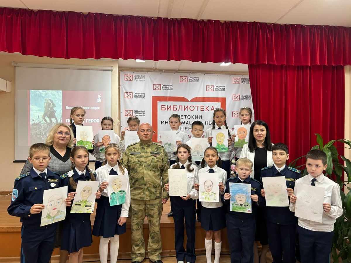 Благодарим героя за искренний разговор, а ребят за добрые душевные работы! Модератора встречи Анну Васильевну Федорову, заслуженного работника культуры Чувашской Республики - за организацию.